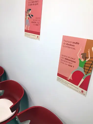 Vos patients viennent chez vous dans un espace de « soins » parce que c’est «un lieu commun» : chez le kinés, on se fait soigner. C’est à faire évoluer ! Sachez que vos patients lisent beaucoup chez vous et pas seulement dans les magazines que vous laissez à leur disposition. Utilisez donc vos murs et espaces d’attentes pour afficher des messages de prévention, avec ces affiches, le parcours de santé en 6 étapes Ecole du Dos ou tout autre message encourageant les patients à se prendre en charge après le soin.