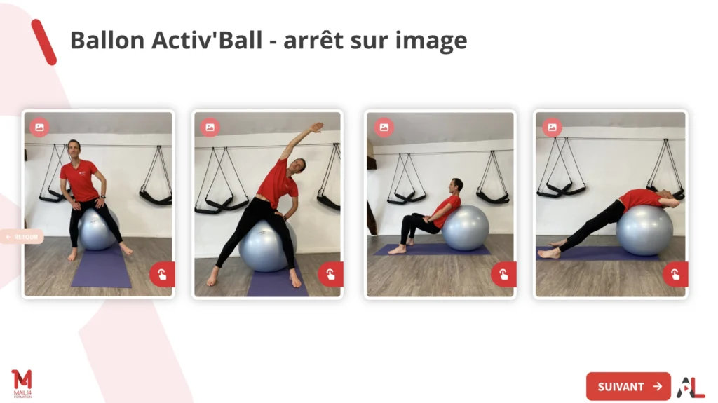 Conçue pour les masseurs-kinésithérapeutes déjà formés à la méthode École du Dos, cette formation en e-learning permet de vous replonger dans les trois dernières étapes du parcours de santé et de vous permettre de développer ou d’enrichir les cours collectifs de sport santé dans votre cabinet.